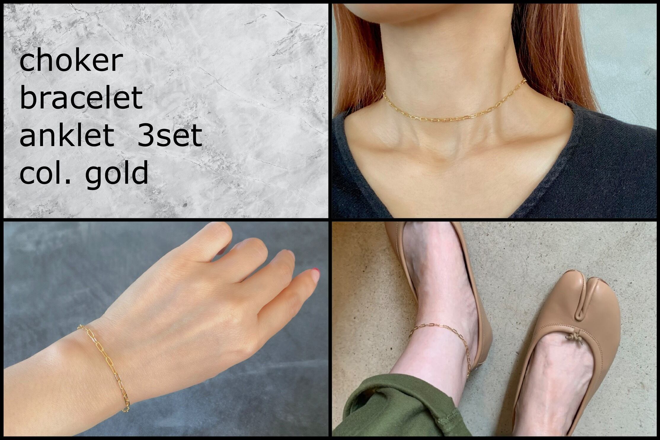 ※こちらのページはチョーカー・ブレスレット・アンクレット(ゴールド)の3点セット販売のページです。